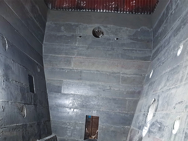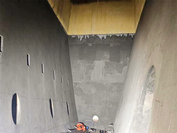 榮盛耐材施工人員正在施工 四川4x90循環流化床鍋爐內襯維修現場 鍋爐內襯不定形耐火材料施工效果 四川4x90循環流化床鍋爐···