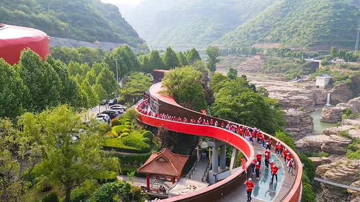 4月29日清晨,迎著山間的朝露與鳥鳴,全體學員前往太行山大峽谷,開展了一場別開生面的觀摩教學。行走在巍巍太行山間,在桃花谷、太行天路中,感受“美太行”的美麗鄉(xiāng)村建設的新時代畫卷,探訪山區(qū)人民自力更生、艱苦創(chuàng)業(yè)的致富精神。