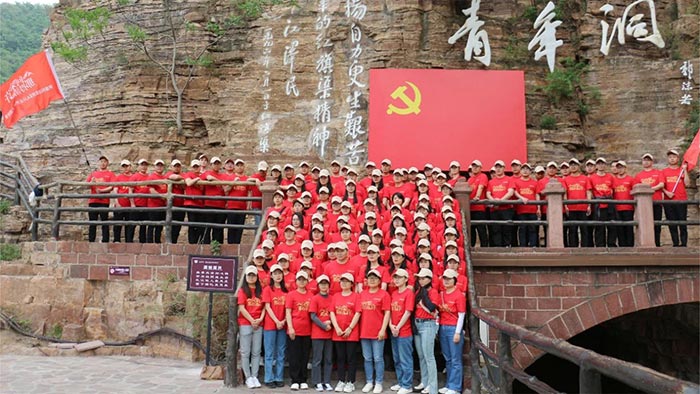 隨后,大家沿著紅飄帶來到了紅旗渠總干渠的咽喉工程——青年洞,通過聽講解、觀實物、看實景、走長渠等,切身實地感受紅旗渠精神的深刻內涵。走在半個世紀前完工的紅旗渠邊,山壁上的一幅幅題字、一幕幕修渠場景次第呈現,每個人都不禁感嘆先輩們“自力更生、艱苦創(chuàng)業(yè)、團結協作、無私奉獻”的紅旗渠精神。通過實地的觀摩和學習,大家真切地感受到了林州人民創(chuàng)業(yè)的艱苦,加深了對紅旗渠精神的認識和理解,也更加堅定了傳承和發(fā)揚這一精神的信念。