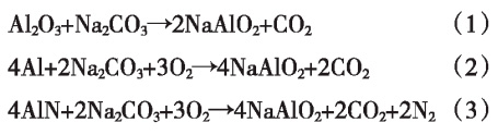 Tripathy等在回收鋁灰中的氧化鋁時,通過蘇打-焙燒法對鋁灰進行預(yù)處理,隨后用堿性溶液浸出,反應(yīng)原理如(1)(2)(3)式: