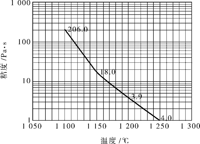 經(jīng)過試驗(yàn),向試驗(yàn)煤樣中加入當(dāng)?shù)厣衬械纳匙舆M(jìn)行堿酸比例的調(diào)整。通過試驗(yàn)可知,當(dāng)向試驗(yàn)煤樣中加入相當(dāng)于煤灰分40%的沙子時,煤的粘溫特性得到了改善,灰熔點(diǎn)同時也得到了降低,粘溫特性如圖1。