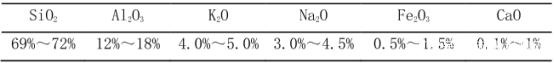 閉孔珍珠巖是選用天然珍珠巖礦經過一系列復雜工藝制得,其工藝過程:珍珠巖原礦→粉碎篩選成珍珠巖礦砂→預熱→多級加熱→膨脹玻化→冷卻處理→成品。其主要成分如表1。